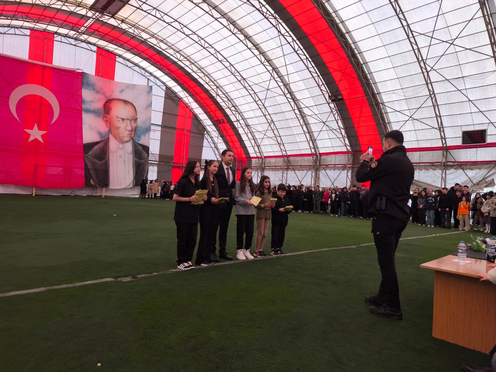 Yoğun yağış nedeniyle Doğankent Belediyesi Halı Sahası'nda gerçekleşen 29 Ekim Cumhuriyet Bayramı kutlamalarına Kaymakamımız Deniz YILDIRIM, Belediye Başkanımız RÜşan ÖZDEN protokol üyeleri ve çok sayıda vatandaşımız katıldı. 28 Ekim 2025 günü saat 12.00'de çelenk sunulmasıyla başlayan Cumhuriyet Bayramı, 29 Ekim saat 24.00'e kadar devam edecektir.